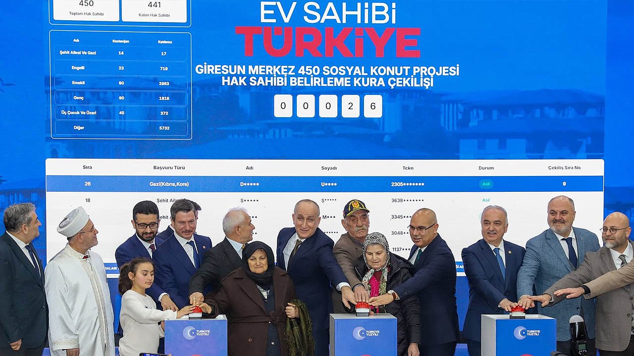 Çevre, Şehircilik ve İklim Değişikliği Bakanlığı, Toplu Konut İdaresi Başkanlığı (TOKİ) tarafından '500 Bin Sosyal Konut Projesi' kapsamında Giresun'da inşa edilecek bin 676 konutun hak sahiplerinin belirlenmesi için kura töreni düzenlendi.